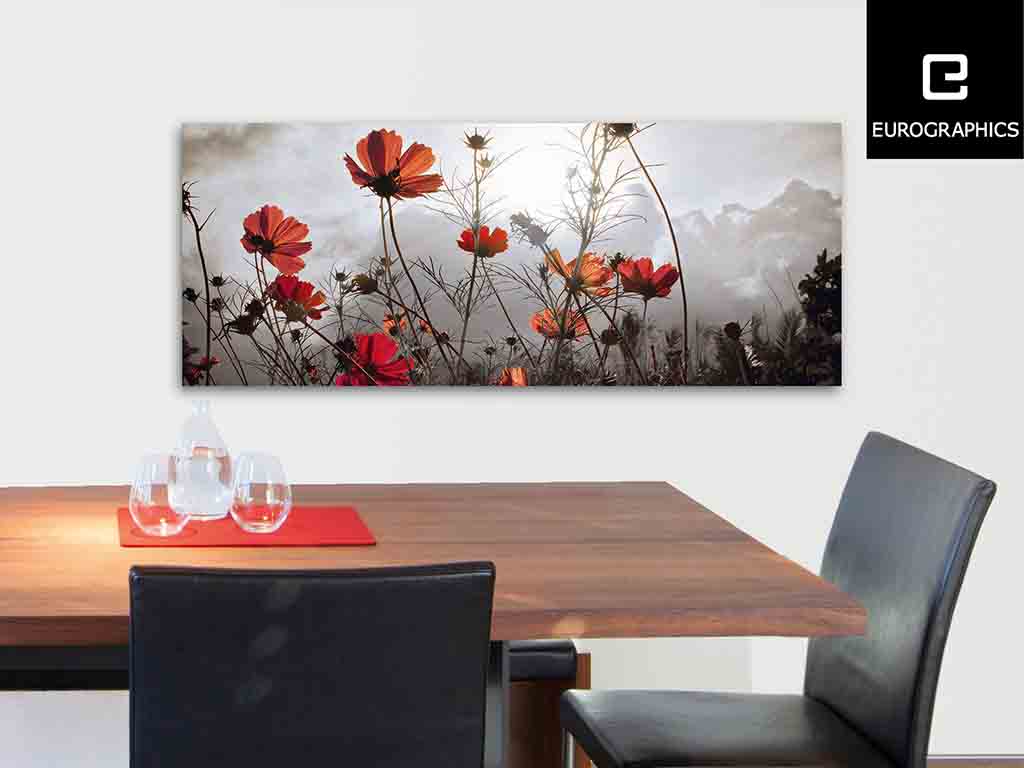 Tablou Sticla Watching The Sun Cu Model Maci De Culoare Rosie
